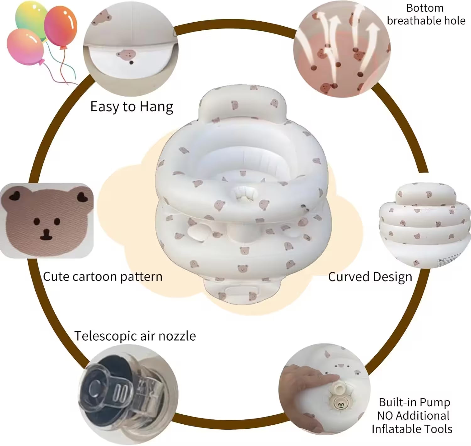 This soft and supportive inflatable baby seat is designed to help babies sit upright while playing, eating, or relaxing. Whether you're at home or on the go, this lightweight and portable sofa makes parenting a little easier.
